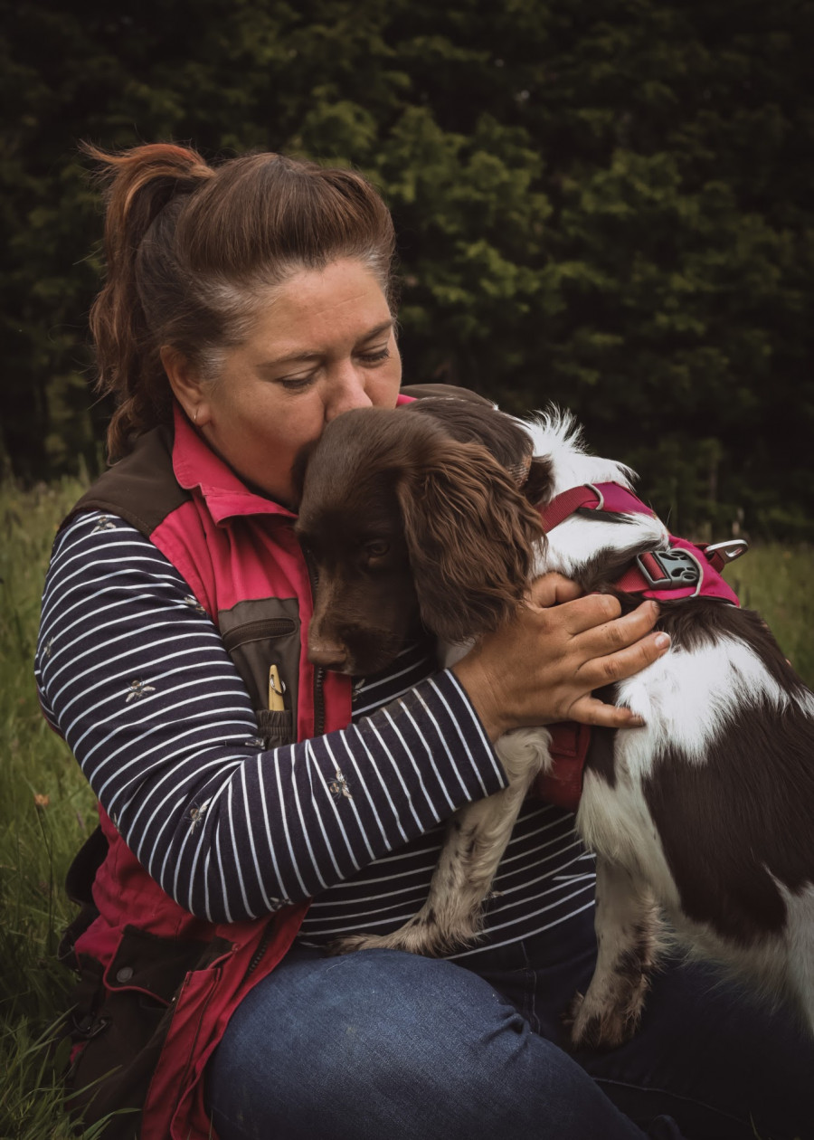 The training started when I experienced fear aggression with my springer spaniel and separation anxiety with my lab cross collie. Then having to take advice and guidance from experts, reading countless amounts of books etc did I start to understand how easily these things can be prevented at an early age and with a bit of forethought for training.